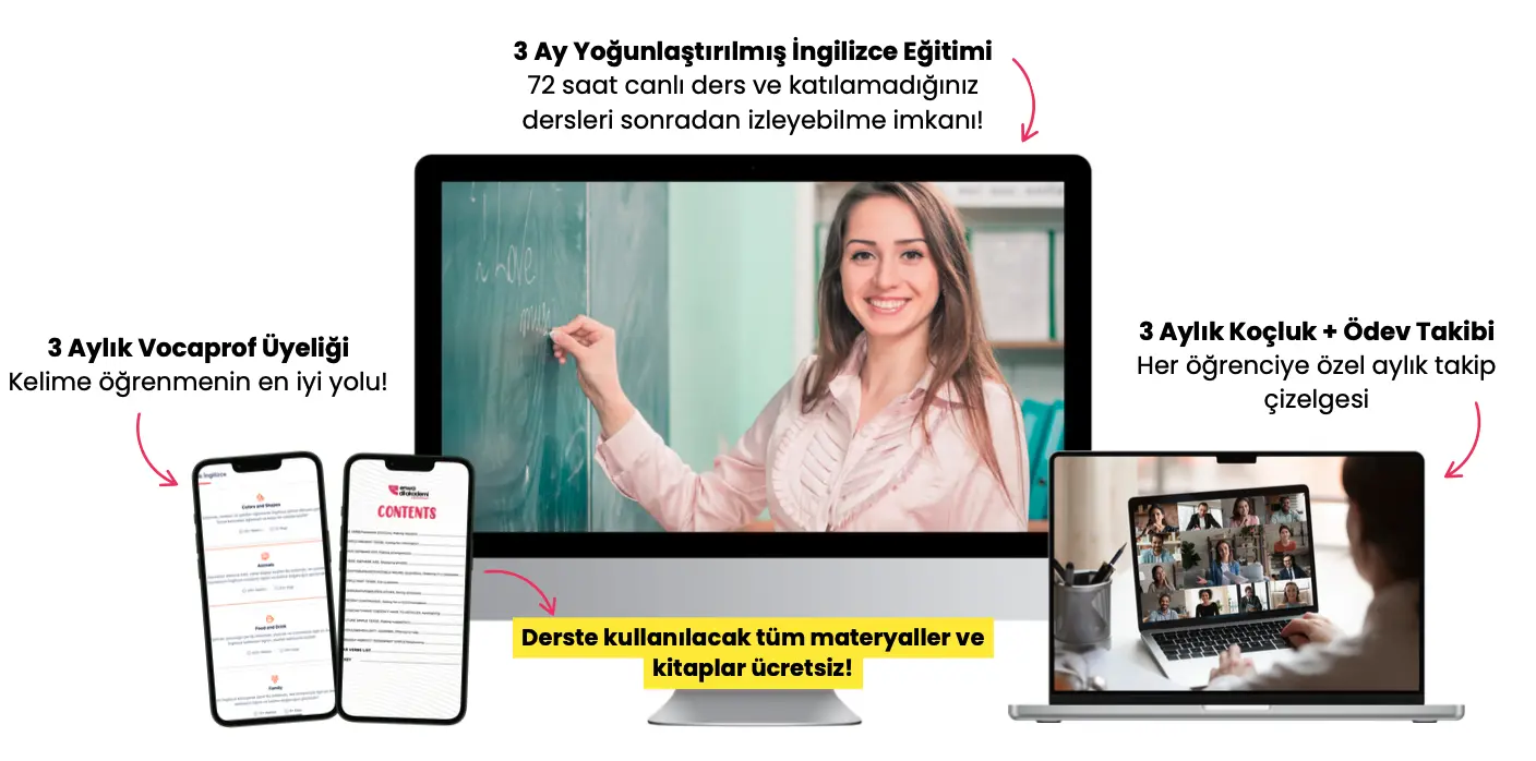 - 3 ay boyunca 72 saat konuşma odaklı canlı dersler.